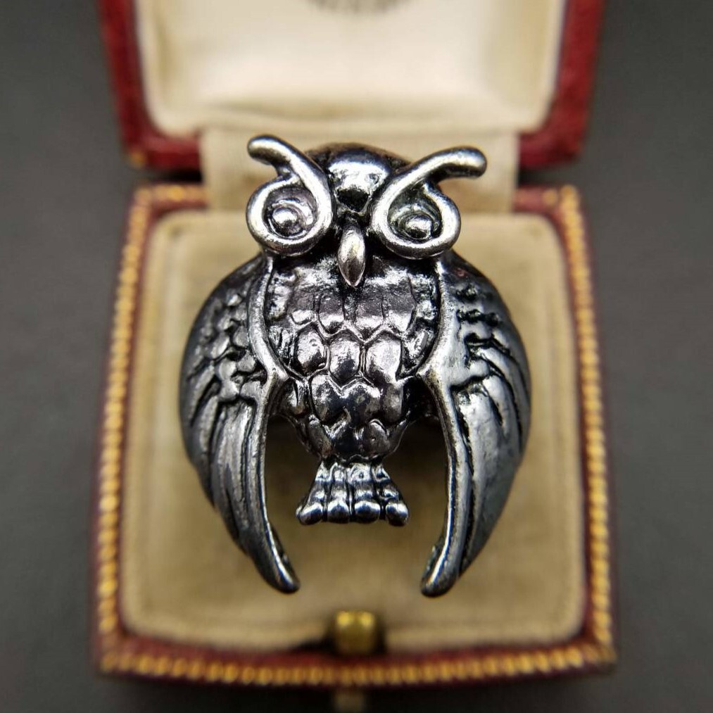- フクロウ アニマル ヴィンテージ バイカー リング シルバートーン 指輪 鳥モチーフ 大ぶり 立体彫刻 メンズ ADB