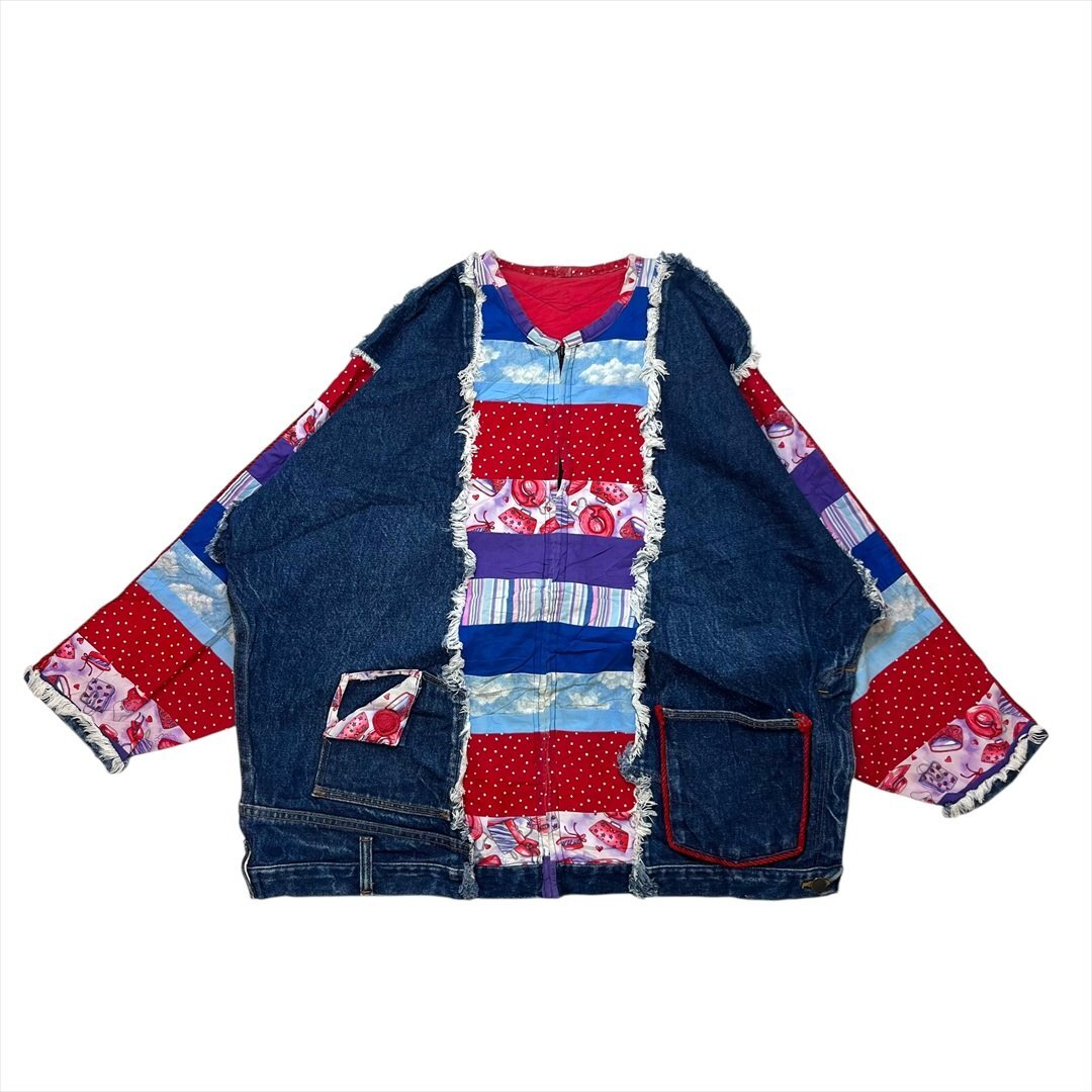 > 一点物 リメイク ジャケット 柄物 古着 レディース FREE ジーンズ デニム パッチワーク Vintage ビンテージ ヴィンテージ
