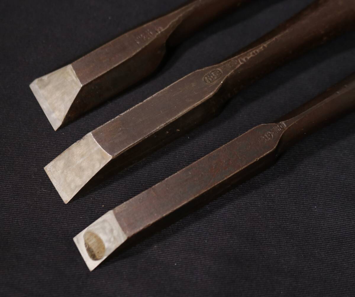 - 長剣厚鑿 3本 14.5mm(かず弘) 18mm(助之) 24mm(新潮) ノミ 厚鑿 大工道具