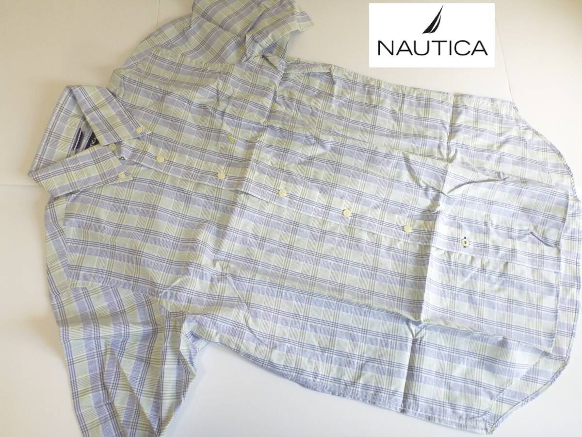 > 新品 NAUTICA(ノーティカ)★紺×緑×白 チェック柄 半袖シャツ ロゴ刺繍 M相当 S スケーター ダンサー