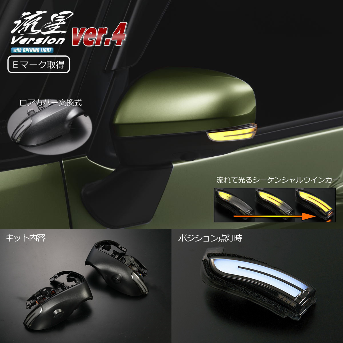 > REIZ LA550S LA560S ミラトコット LED ウインカーミラー レンズKIT 流星 Ver.4 ポジション ホワイト フットランプ付