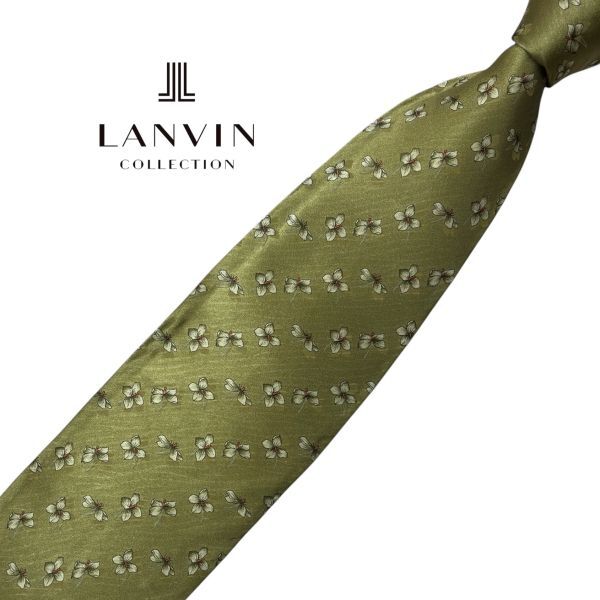 - ★新品タグ付★花柄★高級ネクタイ★LANVIN オリーブ系 パターン柄 ランバン フランス製 シルク 訳ありプレス済み USED ネコポス可 t1224
