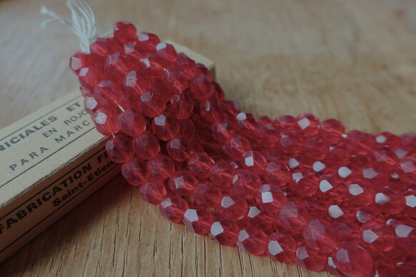 - ヴィンテージ ガラスビーズ クリア赤 多角カット 6.2ミリ 10個