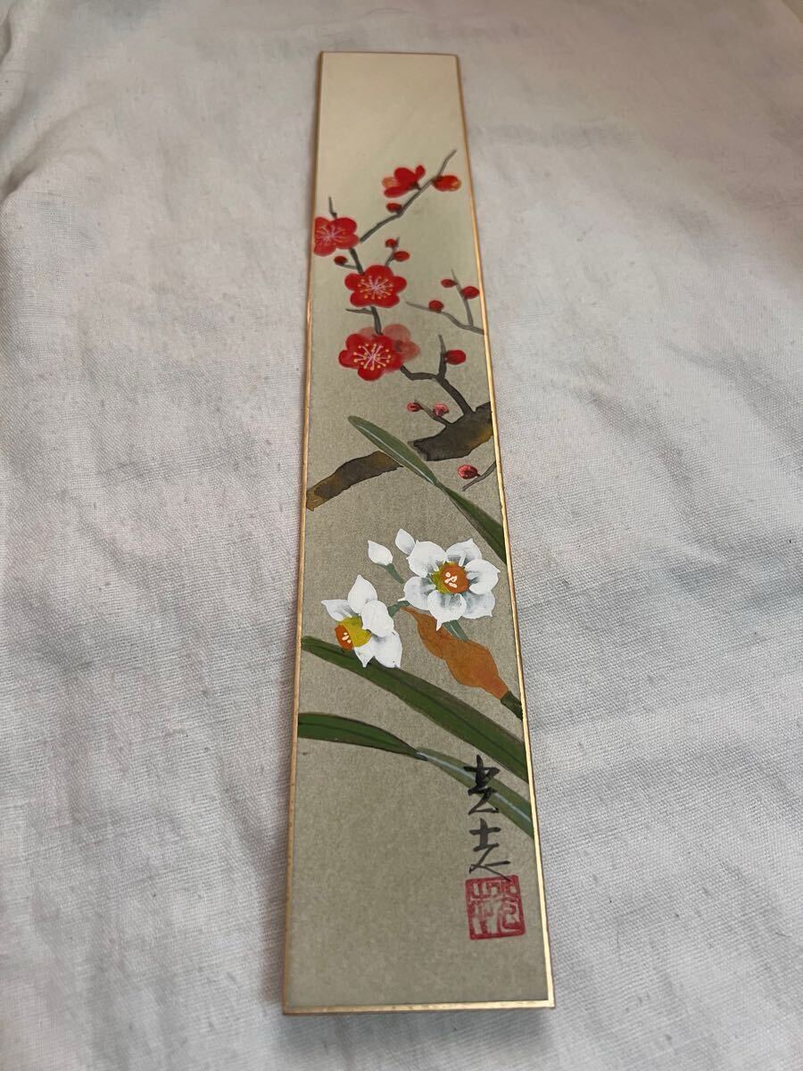 - ◆短冊 紅梅水仙 沢田光志◆B-1863