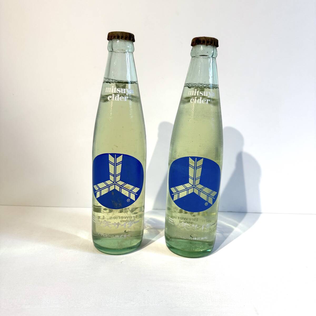 - 未開栓 未開封 古い瓶 アサヒ 三ツ矢サイダー 2本セット 当時物 350ml 昭和レトロ アンティーク ビンテージ 古道具シャビー コカコーラ
