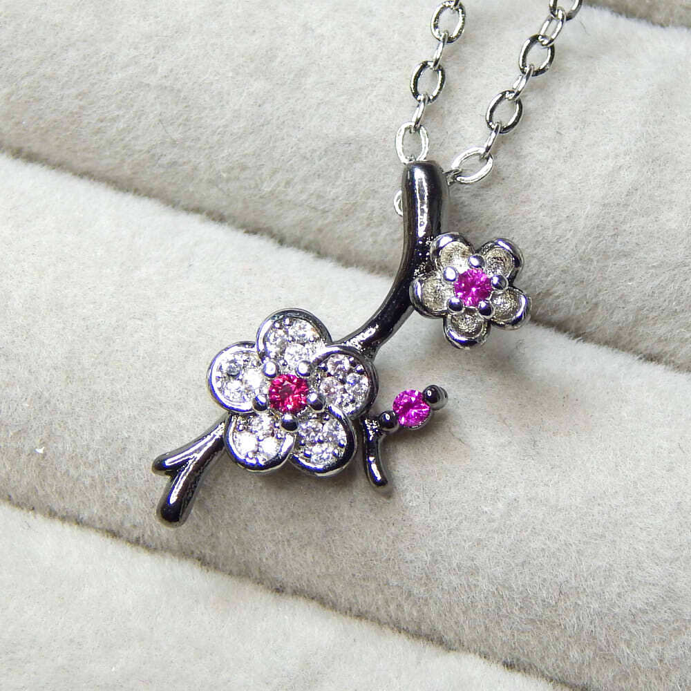 - 新品★送料無料 極上の逸品 極美 ジルコニア 梅の枝 CZルビーダイヤモンドネックレス シルバー925 Black Plated レディース アクセサリー