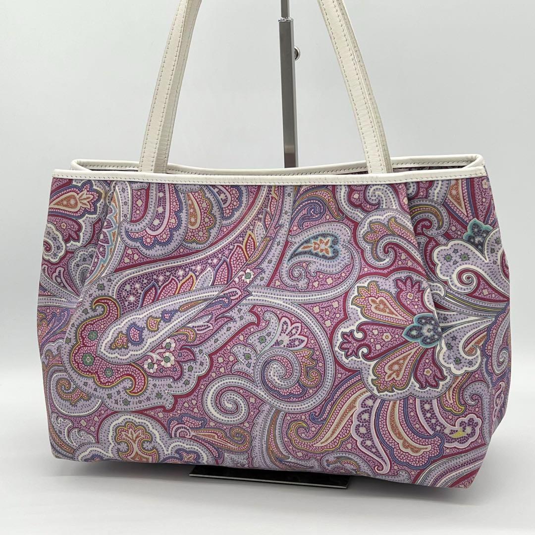 > 【良品】ETRO エトロ ペイズリー トートバッグ 肩掛け A4サイズ キャンバス レザー パープル フォーマル レディース 通勤 通学 CA530418A