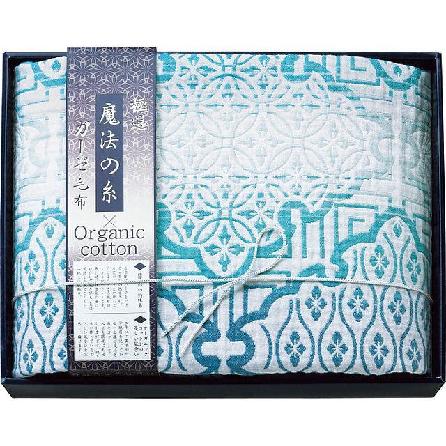 - 〔ギフト〕極選魔法の糸×オーガニック プレミアム四重織ガーゼ毛布 ブルー
