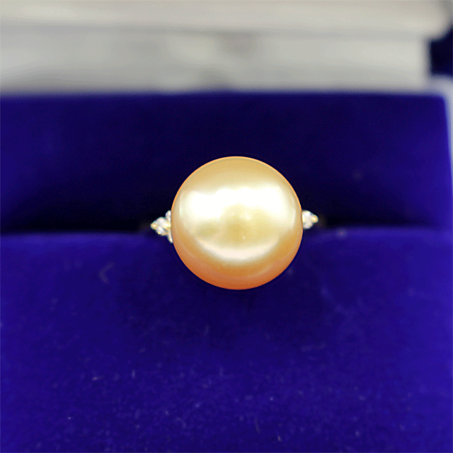 - K18 白蝶養殖真珠 ゴールデンパール 指輪 リング FD0.08ct 12.5mm 12号