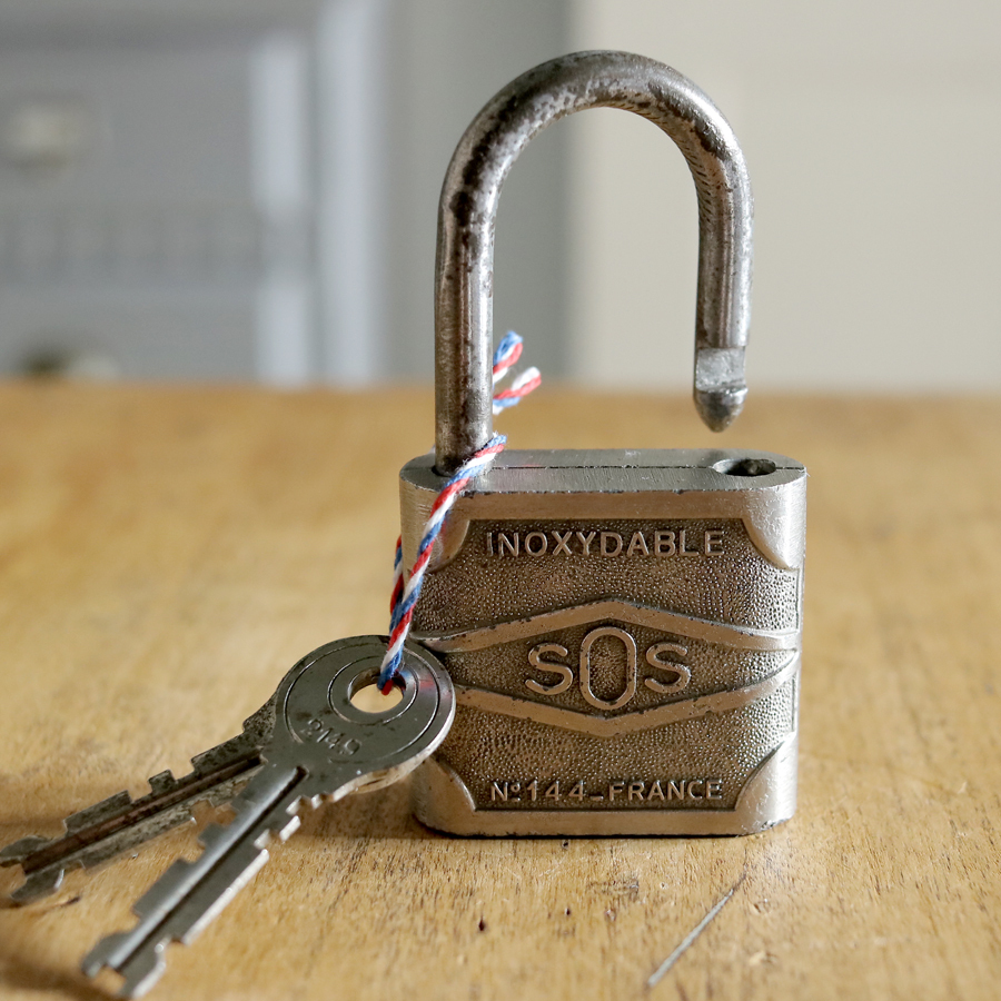 - 【刻印 エンボス FRANCE】フランス アンティーク パドロック 南京錠 熊鍵 ドアロック ラッチ ロック インダストリアル 扉 北欧 鍵 key E