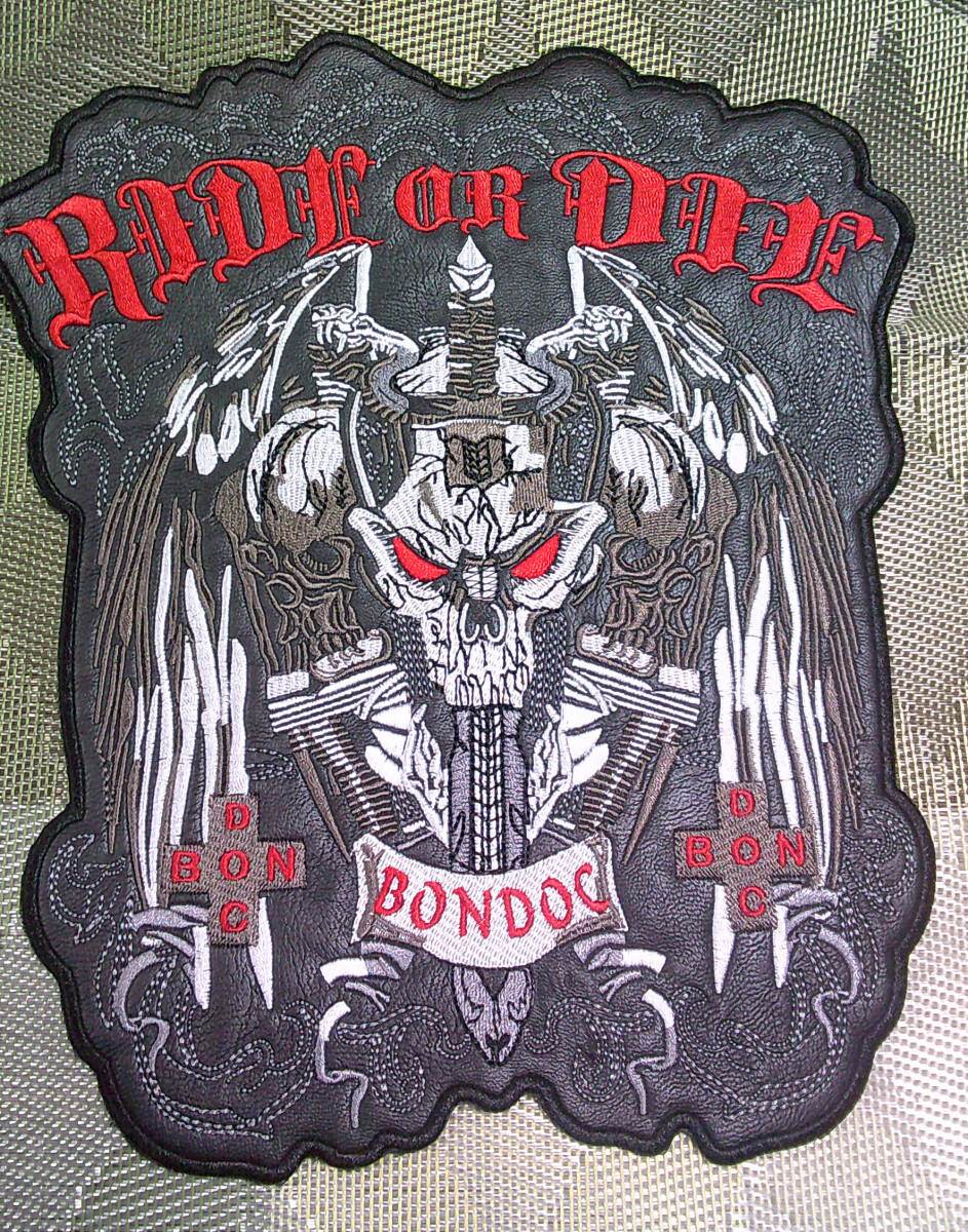 > 《特大◇人工皮 黒赤US両翼双蛇エンジン剣髑髏》新品『アート 人工革 フェイクレザー』 バイク オートバイ 二輪車 刺繍 ワッペン■洋服DIY