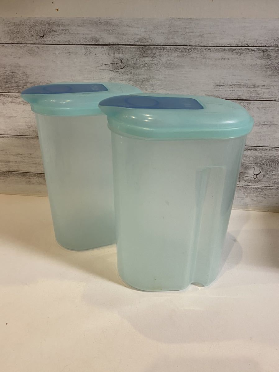 - プラスチック製 ピッチャー 2個セット 2L 水入れ 麦茶入れ 保存容器 水色 昭和レトロ