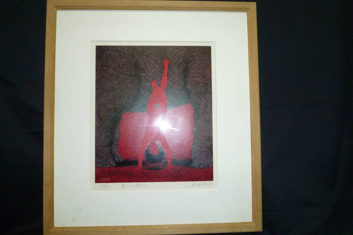 - 美術品 斎藤吾朗 直筆サイン「象さんに逆立ち」希少25部作 骨董品 シリアル シルクスクリーン 風景画 人物画 赤の魔術師