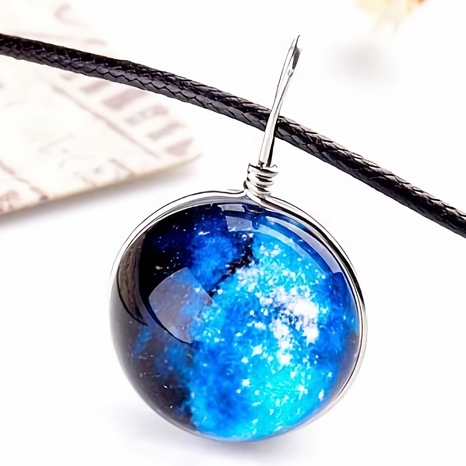 > 新品★送料無料★宇宙の天球 清涼な青 銀河ギャラクシースフィア シルバーネックレス誕生日プレゼント旅行連休初春花見ギフト国内発送