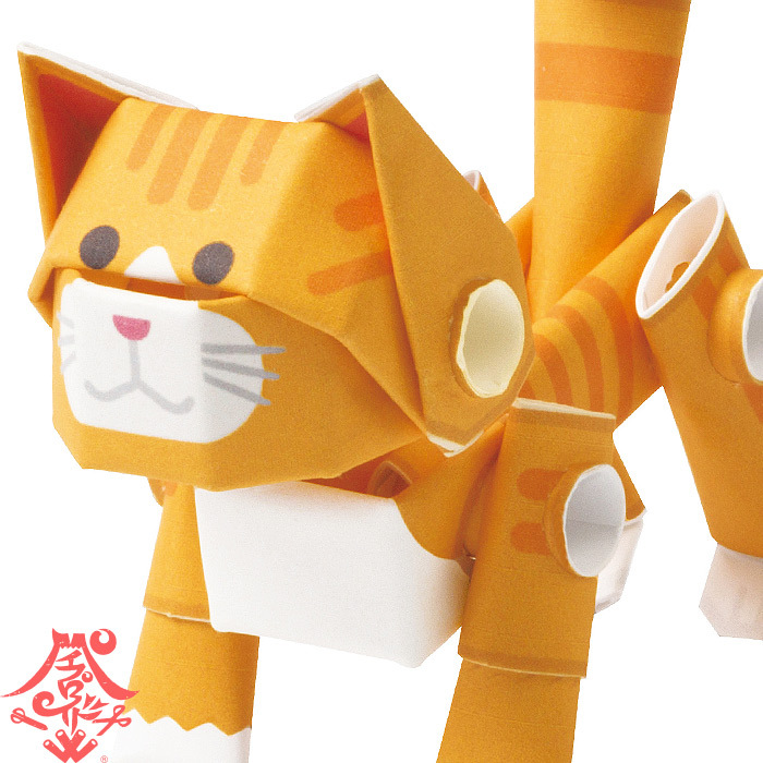 - 動く紙工作 パイプロイド(PIPEROID) アニマルズ 茶トラ ペーパークラフト 可動 ねこ ネコ 猫 日本製 子供と一緒に作るおもちゃ 知育 作成