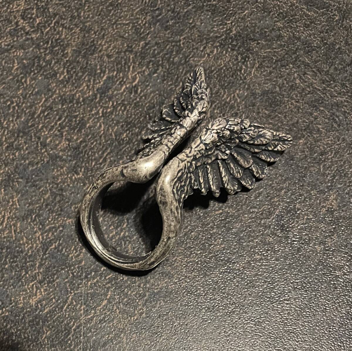 > デッドストック90sオールドbio-politicsウィング翼リング8号~ピンキー ビンテージ加工ユニセックス名作アーカイブ90年代バイオポリティクス