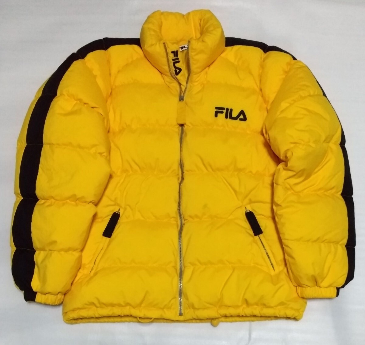 > ☆FILA ダウン ジャケット Sサイズ 上着ジャンパー短コート防寒スポーツ保温アウトドア黄色イエロー黒イタリア ファッション ウェア フィラ