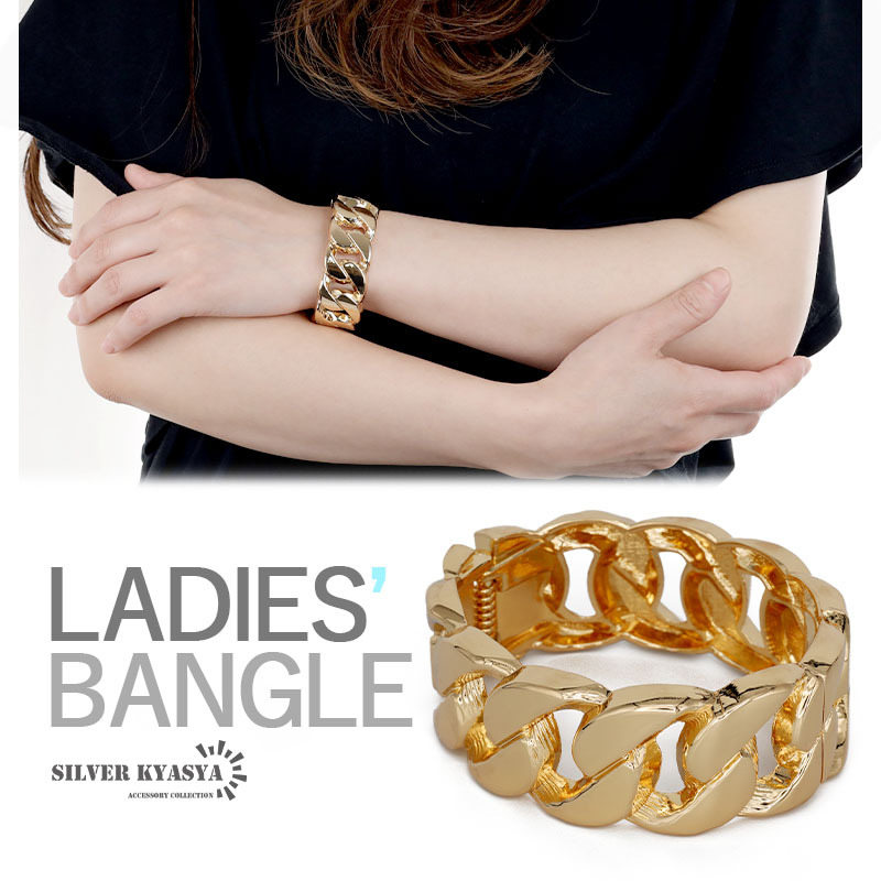 > 喜平バングル ワイドバングル チェーンバングル 幅広 太めバングル 喜平チェーン ゴールド 開閉式 カジュアル レディース