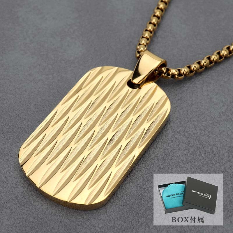 - シンプル ドッグタグネックレス 刀痕 模様 メンズネックレス ゴールド 高級感 プレートネックレス チェーン付き 専用BOX付属