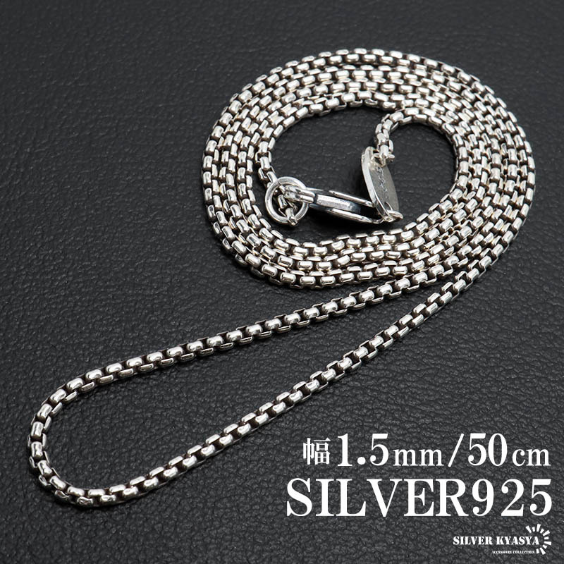 - シルバー925 ボックスチェーン ネックレス 幅1.5mm 50cm ベネチアン 細身 メンズ 男性 金属アレルギー対応