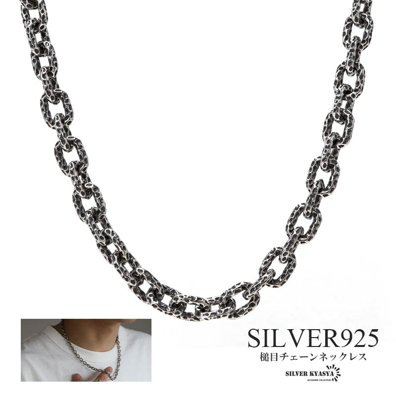 - シルバー925 槌目 チェーンネックレス 燻し加工 ブラック あずきチェーン シンプルネックレス 石 レパード 金属アレルギー対応