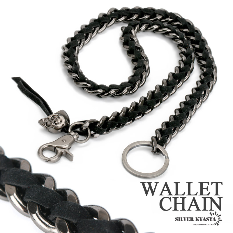 - スカル ドクロ ウォレットチェーン チャーム 髑髏 バイカーチェーン キーチェーン キーフック カラビナ 喜平 70cm