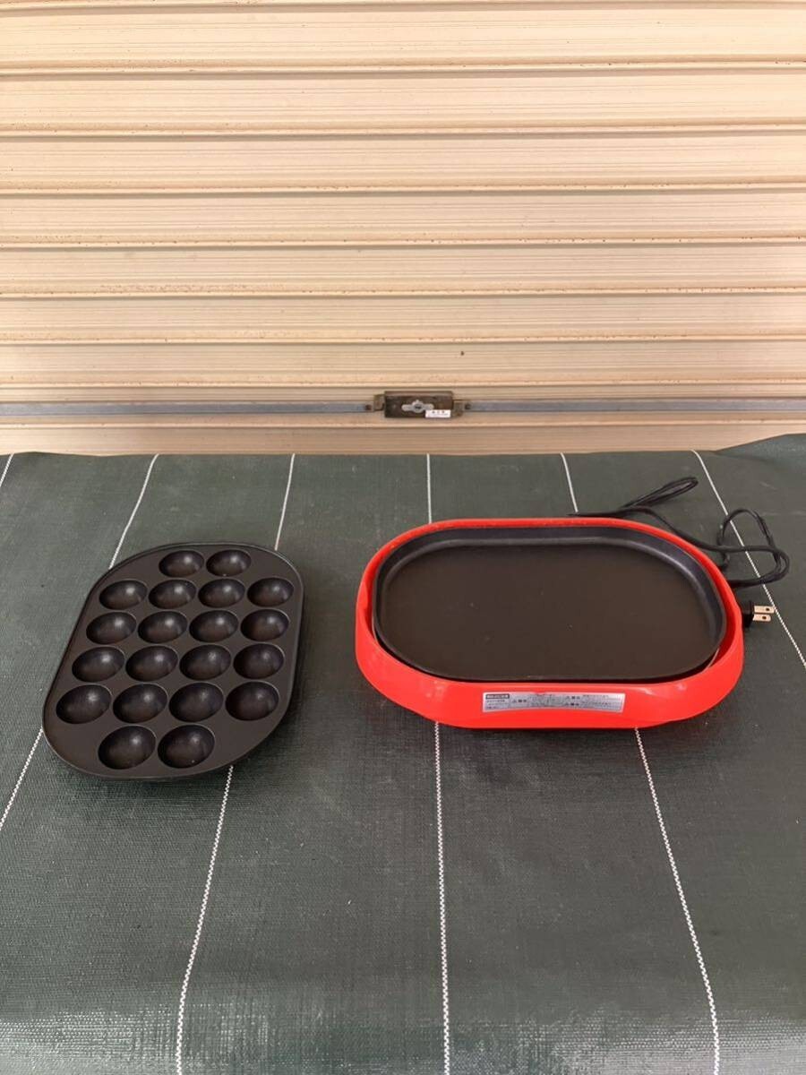 - ★ YAMAZEN プレート丸洗い たこ焼き器 YOC-W200 レッド 平面プレート付き たこやき20個焼き★