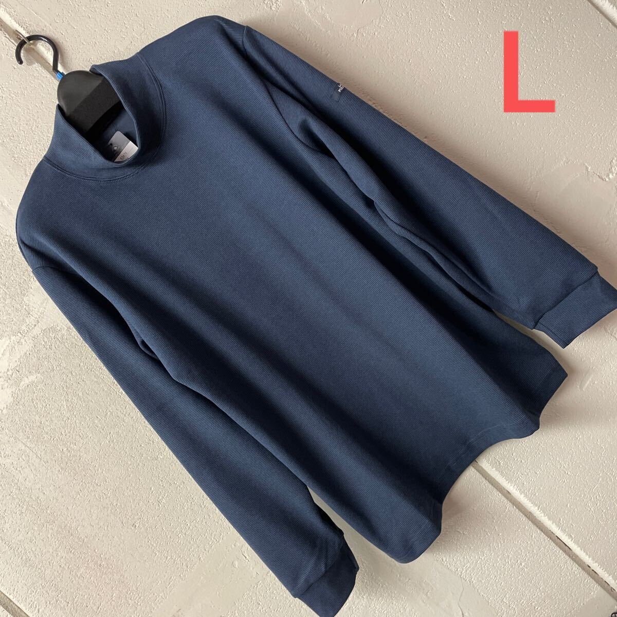 - Lサイズメンズもちもちストレッチ暖か長袖カットソー ボーダーネイビー