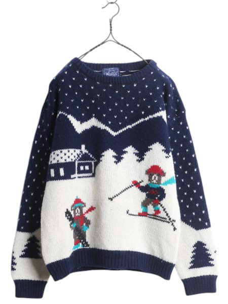 > 80s ウールリッチ ノルディック 絵柄 ウール ニット セーター レディース S / 旧タグ ヴィンテージ Woolrich バーズアイ 総柄 マルチカラー