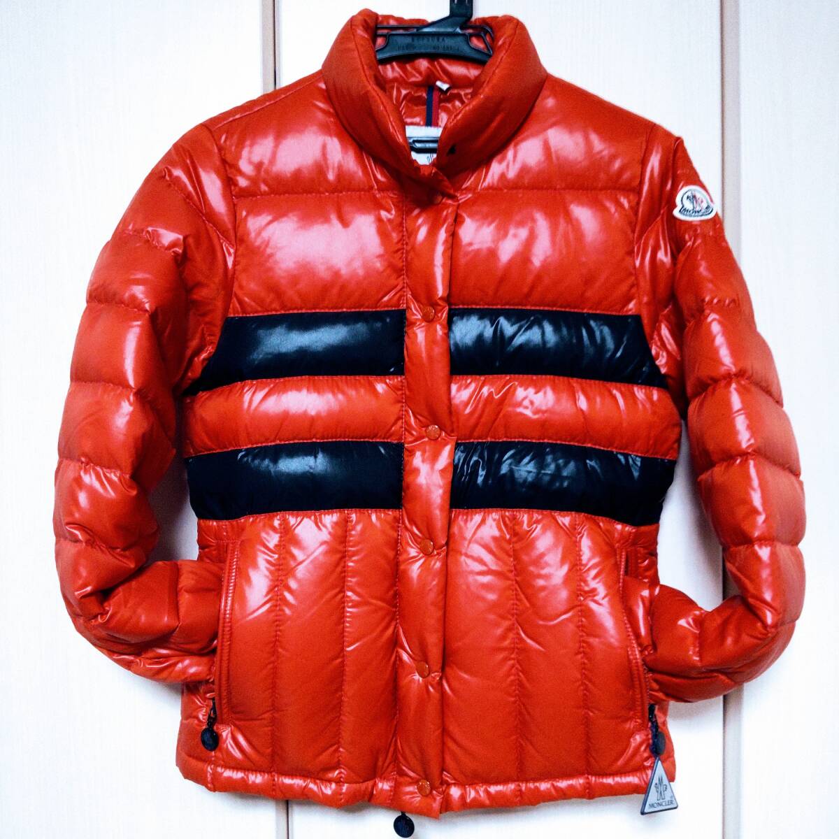 - 極美品 モンクレール イヴ MONCLER EVE ダウンジャケット 1/S~M位 オレンジx黒 送料無料