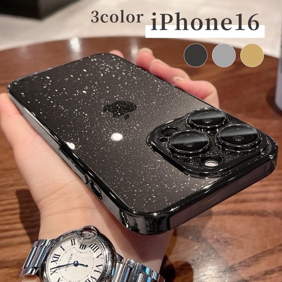 - iPhone16 ケース クリアメタリック カメラレンズ保護 キラキラ ブラック