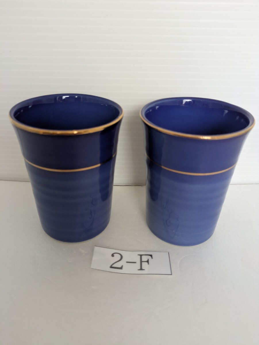 - 湯呑み 藍色金縁2個セット 新品箱無し 2F