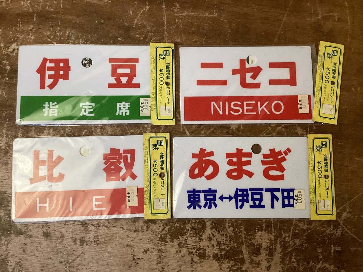 - TT-3850■送料込■ ニセコ 伊豆 比叡 あまぎ 列車愛称標 鉄道 電車 ミニ プレート 看板 JR 国鉄 142g 4枚●まとめて/くGOら