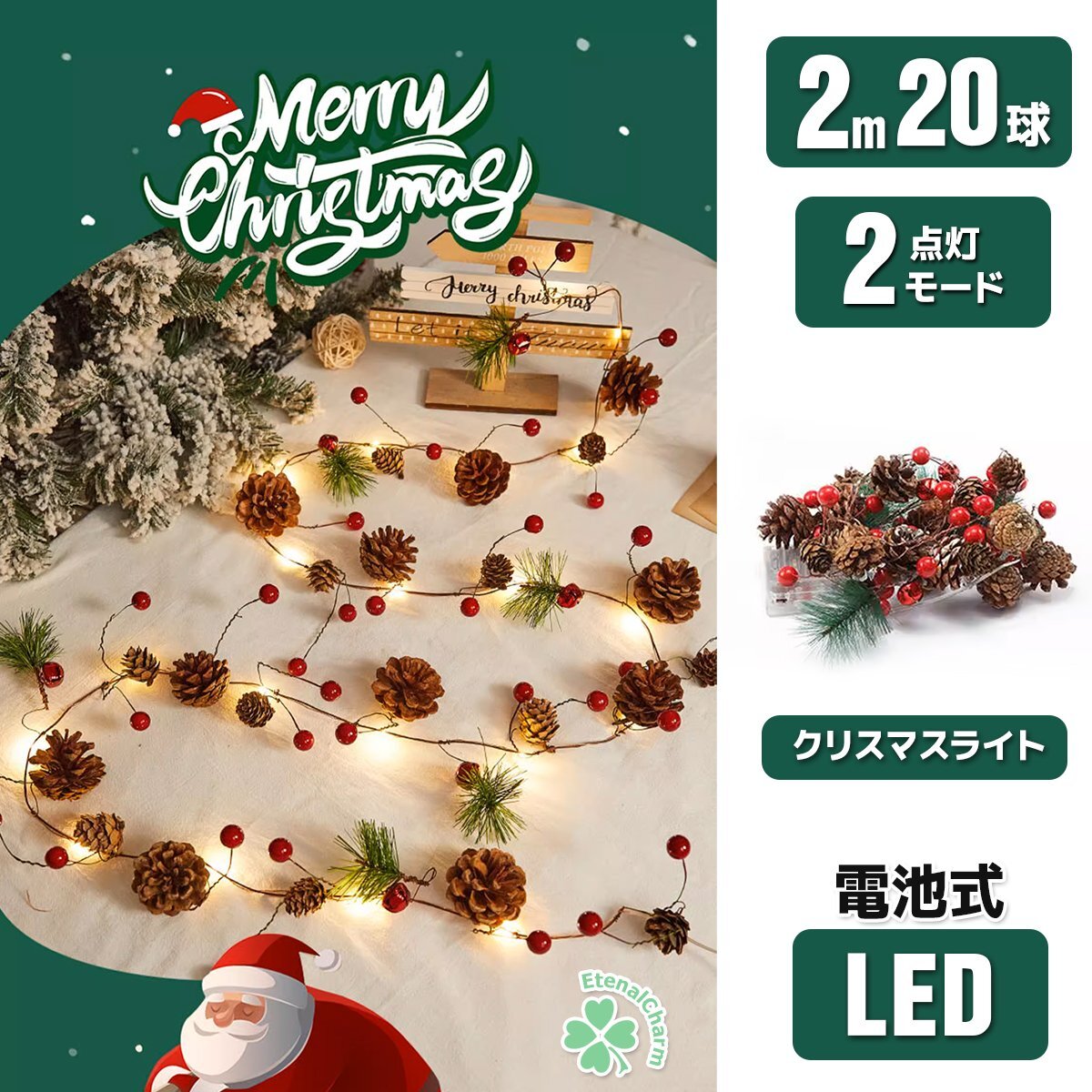 > クリスマス ツリー お正月 飾り LED ライト 松 松ぼっくり 2m 20球 ハロウィン パーティー 新年 2点灯モード 玄関 庭 ドア リビング 暖色