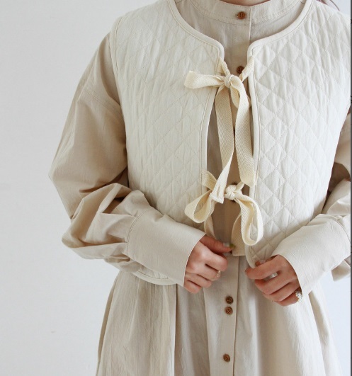 - WQ117●Crisp:キルティングリボンベスト ●F● 生成り クリスプ