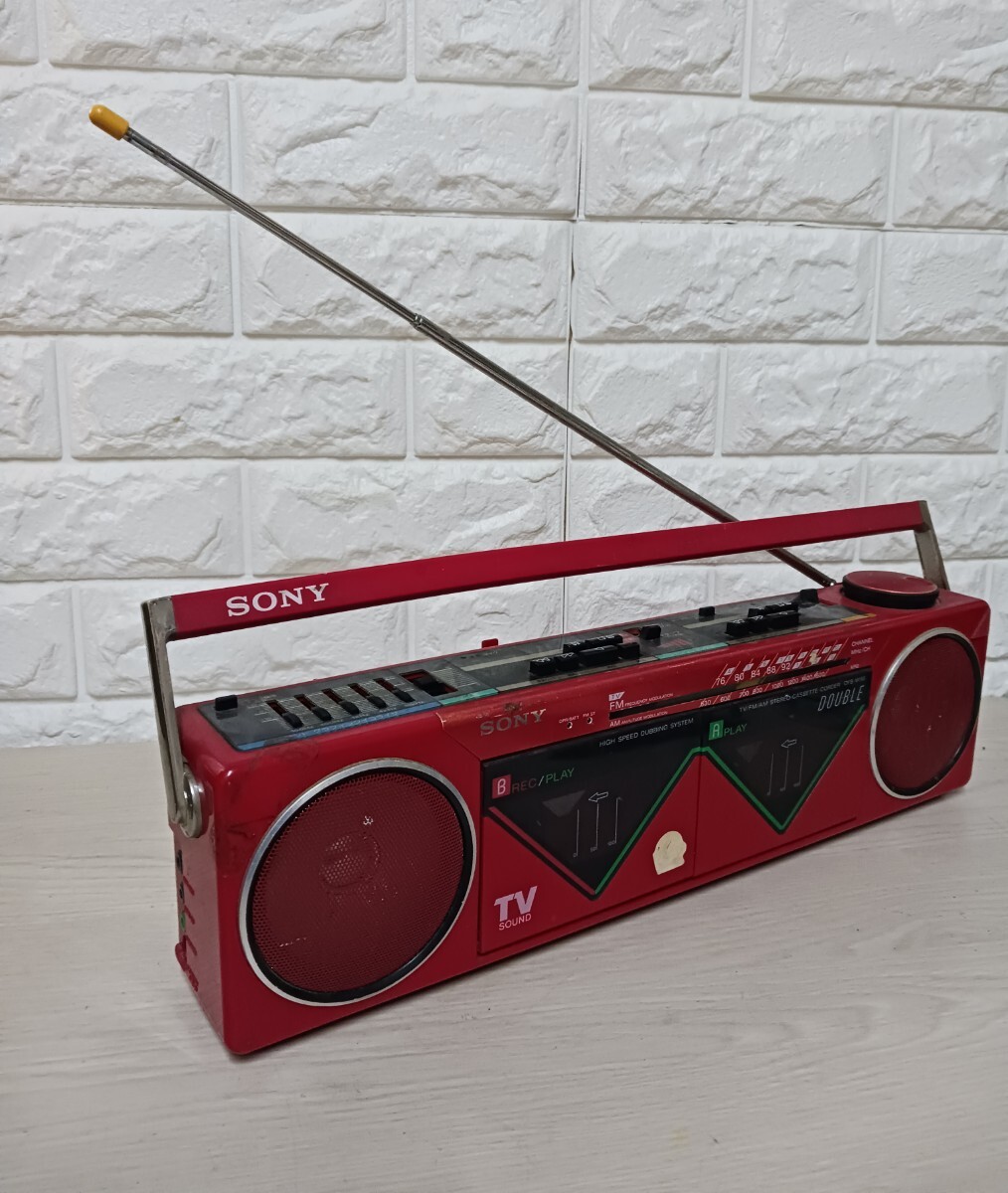 - 希少 動作品 SONY ソニー CFS-W50 ステレオ ラジカセ テープ 昭和 レトロ ラジオ カセットレコーダー 赤 カセットデッキ (G4)
