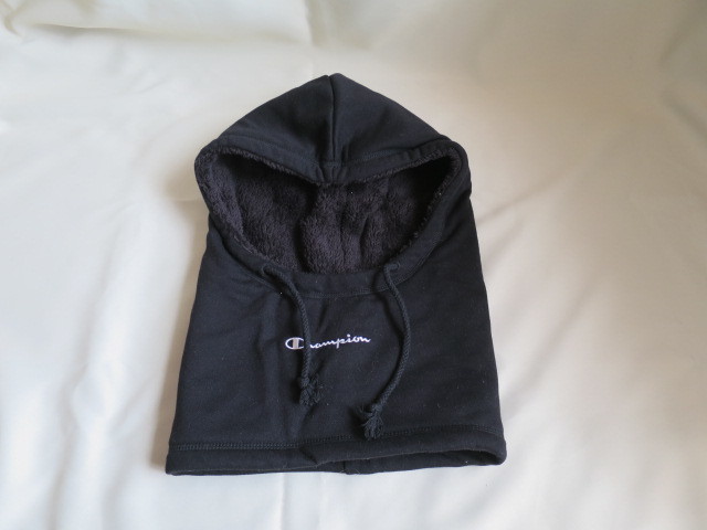 - チャンピオン フード付きネックウオーマー ボア 裏起毛 スウェット地 ブラック