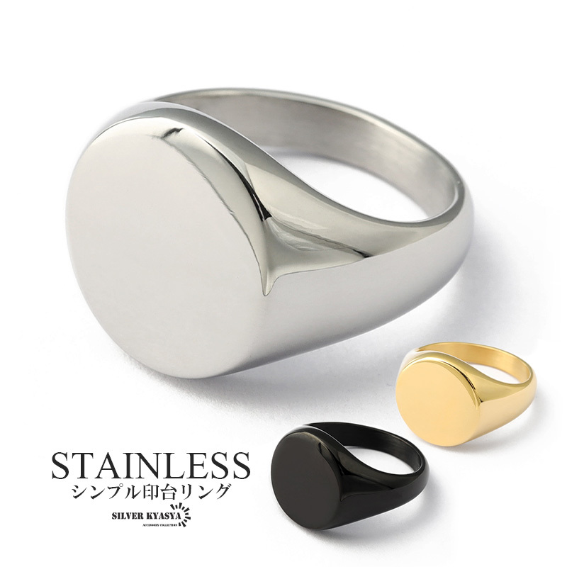 - (シルバー、12号) 高品質ステンレス 印台リング 指輪 ゴールド シルバー ブラック 黒 シンプル 丸形