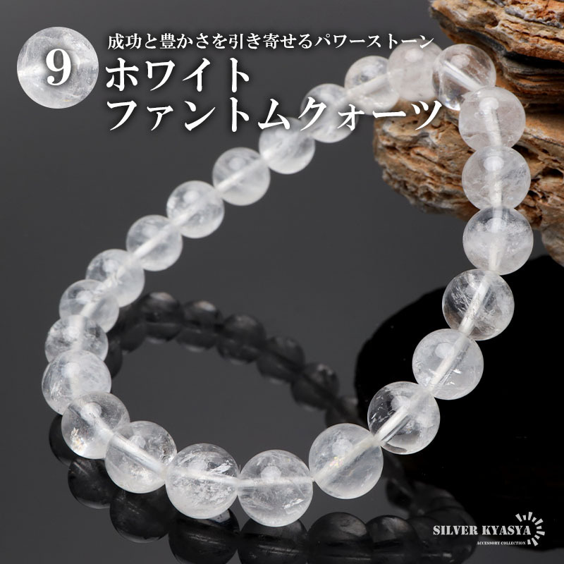 > (Mサイズ) パワーストーンブレスレット 数珠ブレスレット ホワイトファントムクォーツ 9mm 天然石ブレスレット