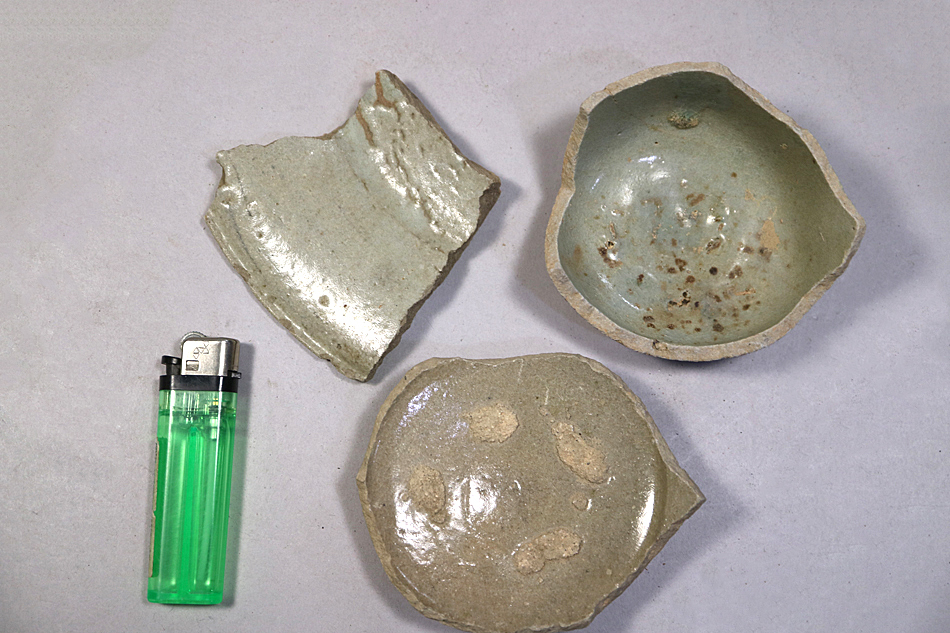- toh5) 陶片3点 唐津焼 古唐津 碗 皿 ●桃山~江戸初期 <窯跡発掘 古陶磁 茶陶 酒器 鉢