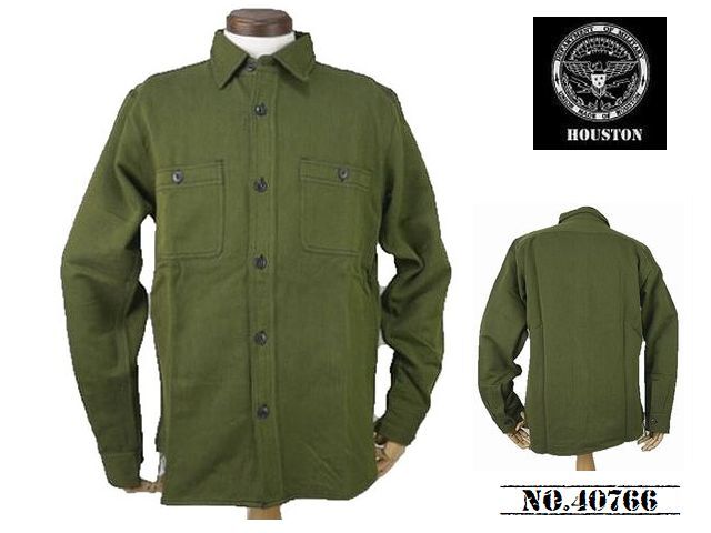 > 【送料無料 30%OFF】HOUSTON ヒューストン ヘビービエラ ソリッドカラーWORKシャツ NO.40766 OLIVE DRAB_Lサイズ