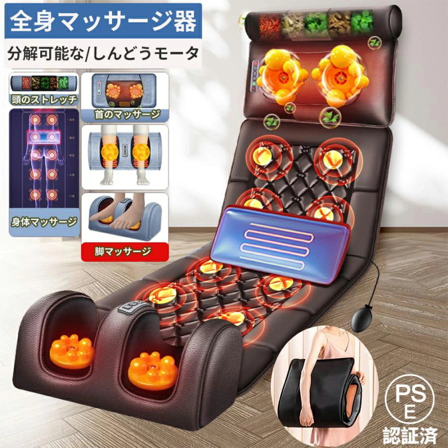 - マッサージシート 寝ながら 全身マッサージ 肩甲骨 多機能 温熱 全身用 首 腰 背中 肩 足 腰こり 軽量 揉み玉 折り畳み 家庭用 癒しグッズ