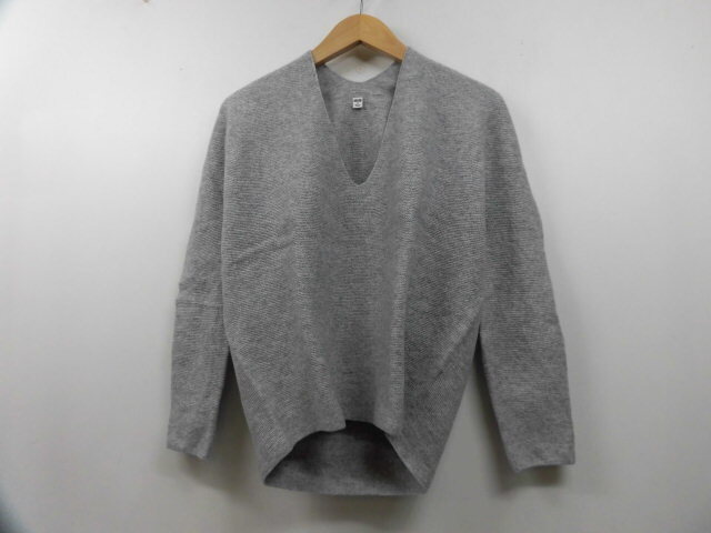 > 日本製 UNIQLO ユニクロ Vネック ニット セーター 毛100% 長袖トップス グレー 灰色 Mサイズ
