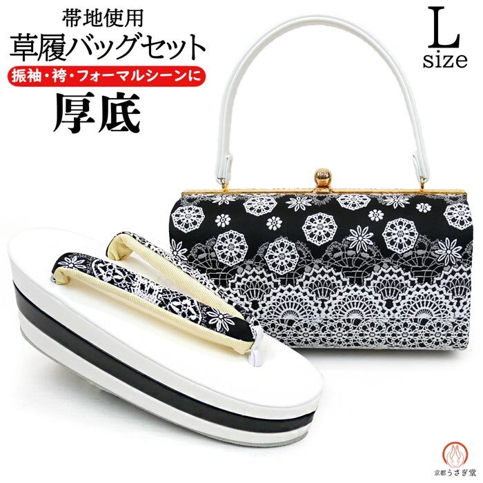 > Lサイズ 厚底 草履バッグセット 振袖用 三枚芯 成人式 zb-879 結婚式 卒業式 黒 ブラック 金 ゴールド