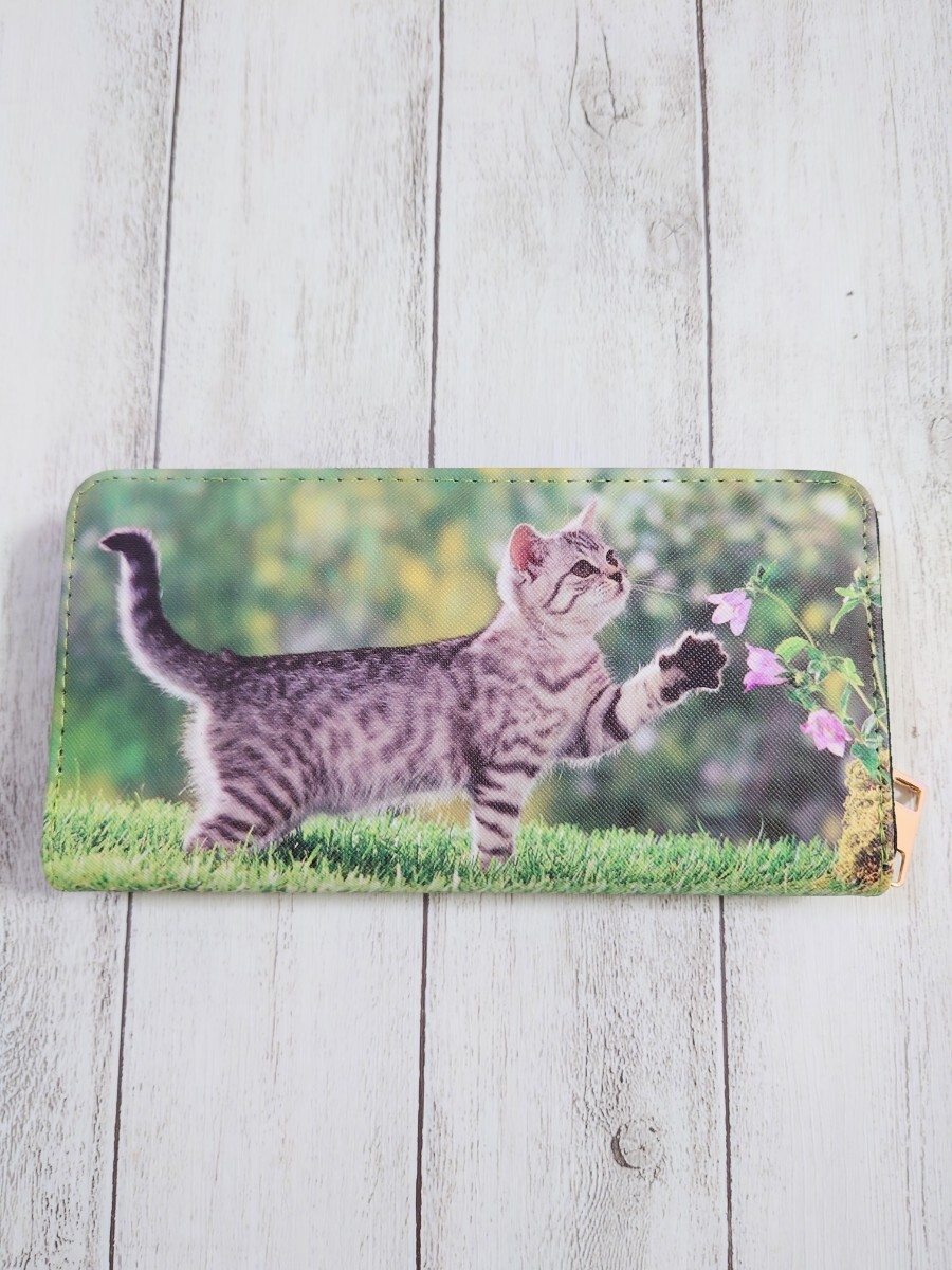 - 猫ちゃん プリント ラウンドファスナー 長財布 財布 ねこ ネコ サバトラ