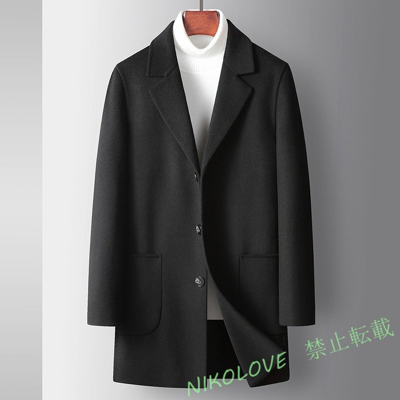 > ☆新品ビジネスコート メンズコート ロングコート 高級ウール セレブ WOOL 厚手 紳士スーツ ジャケット 秋冬 上品 ブラック L LK425