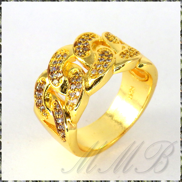 > [RING] 18K Gold Plated ラグジュアリー クリスタルCZ 喜平 チェーン クサリ デザイン12mm ワイド ゴールド リング 16号 【送料無料】