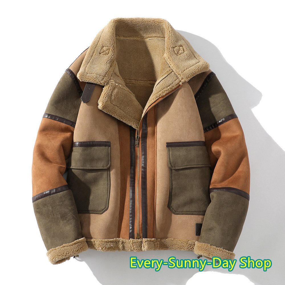 - 新入荷 秋冬 2色選択可 最高級 ムートンコート ブルゾン 羊革 毛皮 ファーコート ライトジャケット配色 シープスキン ラムレザー 緑系 XL