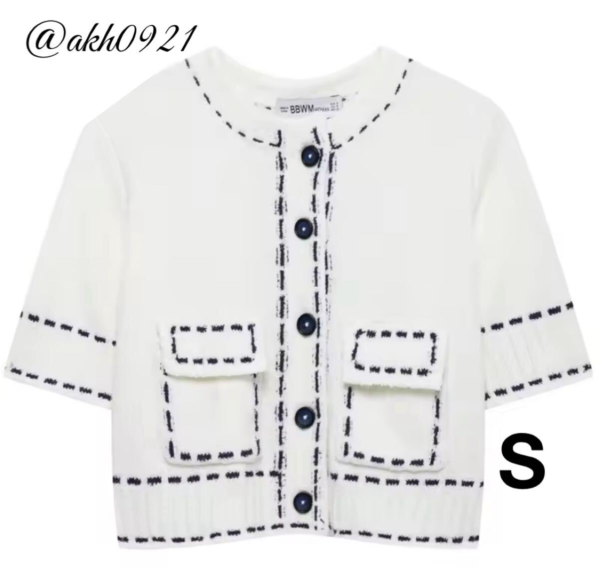 > 新品★2025 S/S 春新作★vintage ヴィンテージ レトロ ステッチ 半袖 ニット カーディガン トップス Sサイズ レディース★ZARA 好きな方に