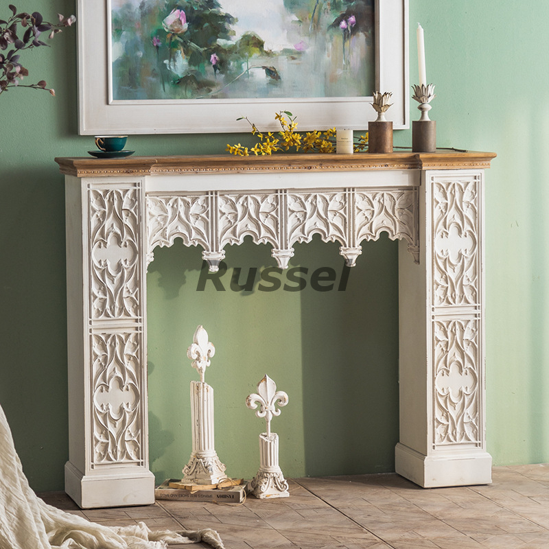 - マントルピース ヴィンテージ調 大きめ おしゃれ かわいい インテリア 北欧 ヨーロッパ 暖炉 レトロ調 カントリー ラック オフホワイト